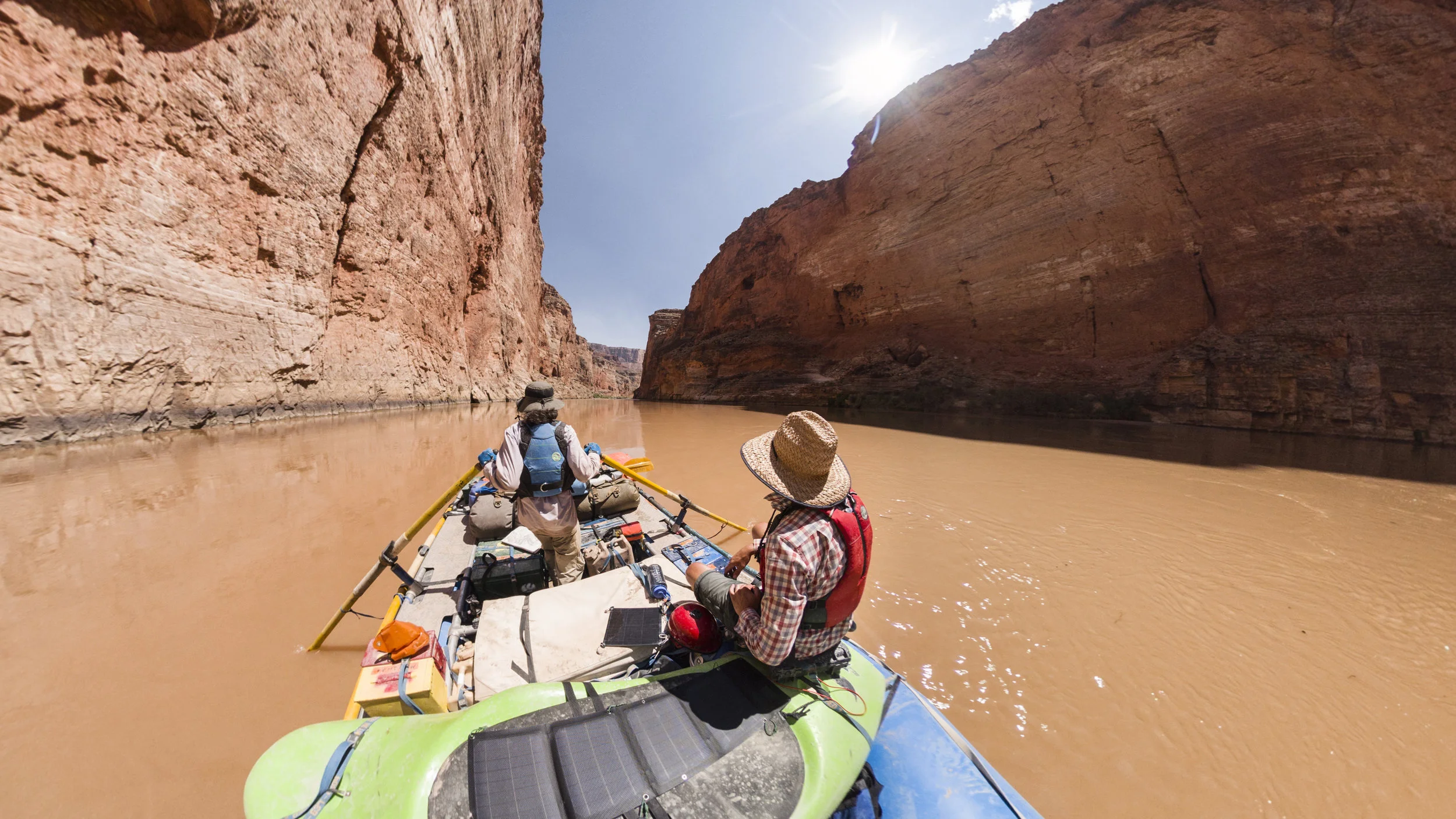 AUG 3, RM 0 to 11. We were up early, at 530 AM to begin the ritual of tearing down our campsites and loading our gear onto the rafts. We had a cold breakfast, meaning we didn’t set up the stove to cook food, and set about figuring out how to strap all this gear back down again. We met up with another small group who shared a launch date with us, and had a chat with the NP ranger who explained all the things we should have been aware of, had we watched all the videos they sent us. We then had lunch back at our boats around 1130, and waited, very impatiently, for our beach umbrellas to arrive. They had somehow not made it into the truck at the warehouse, and we decided as a group that waiting for someone to drive them out to the put in was a no brainer. Our shade arrived around 1230, we said our goodbyes to our rigging team and drivers, and were on the water to begin our odyssey through the big ditch.